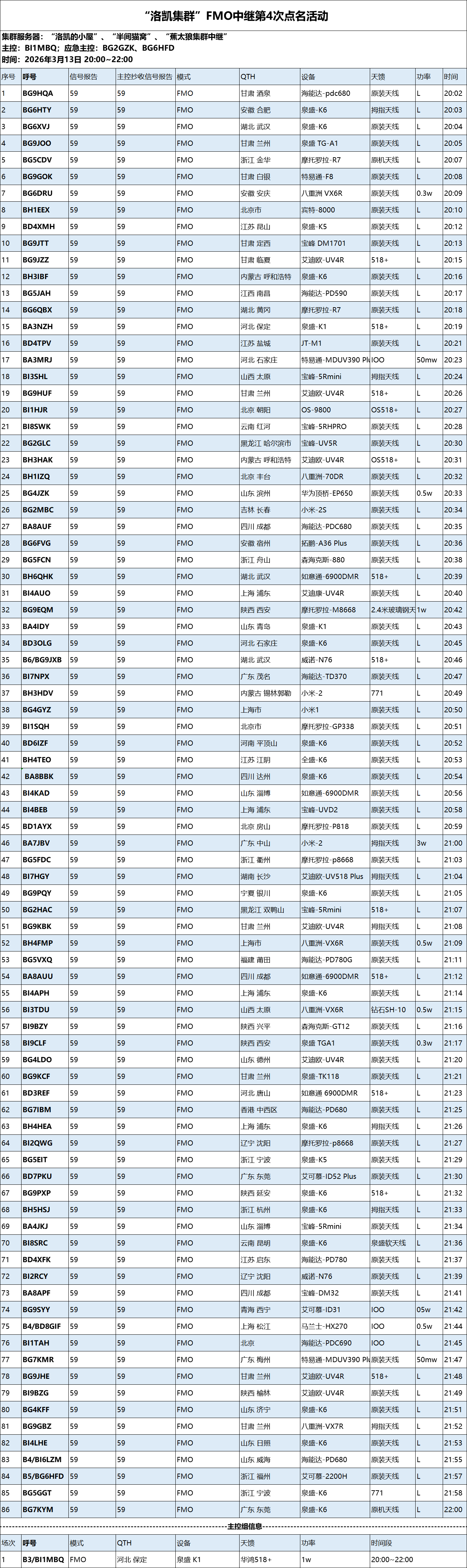 "洛凯集群"第4次点名结果 洛凯 | 2026-3-17 7:56 | 19 | 0 | FMO点名 各位友台好,以下是“洛凯集群”FMO服务器第4次点名活动结果~感谢主控辛苦付出!也感谢各位友台参与,祝您通联愉快,73! 当前页面URL: https://tylk.cc/archives/1175