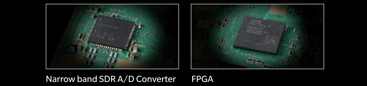 机器右上角为来自德州仪器的TMS320C6746,一颗32bit的高性能32位DSP芯片,浮点处理频率为456MHz,用于处理音频信号;实际运行频率为368.64MHz,除了能够实现SHIFT/WIDTH/NOTCH/APF等功能,NB与DNR降噪功能也由这颗DSP芯片完成:
