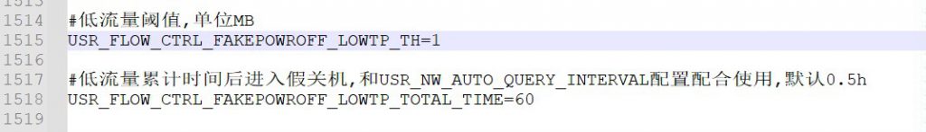 3.继续翻找模块文件,终于在flow_control模块中又找到了这个标志,好家伙原来是跟流量检测模块放一起的,同时也找到了一个值,USR_FLOW_CTRL_FAKEPOWROFF_LOWTP_TOTAL_TIME,触发关机的低流量累计时间,因为是30秒进行一轮检测,所以实际时间为这个值的一半分钟。程序里会把实际低流量的时间与这个预设值做对比,当实际低流量时间比预设值大时,放出关机标致,由其它程序执行关机。